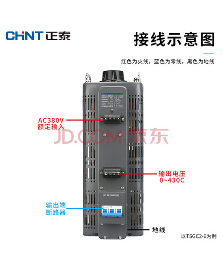 正泰(CHNT)调压器TSGC2-1.5 380V大功率三相电压变压器 接触式调压器交流调节器 输入380V