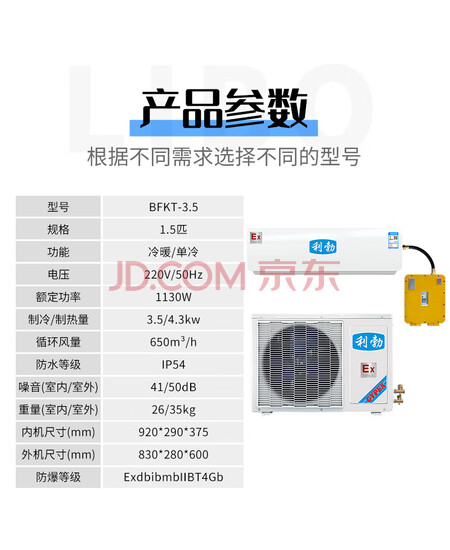 利勃防爆空调1.5匹壁挂式自营工业环境弹药库电气化工特种冷媒整机防爆BFKT-3.5