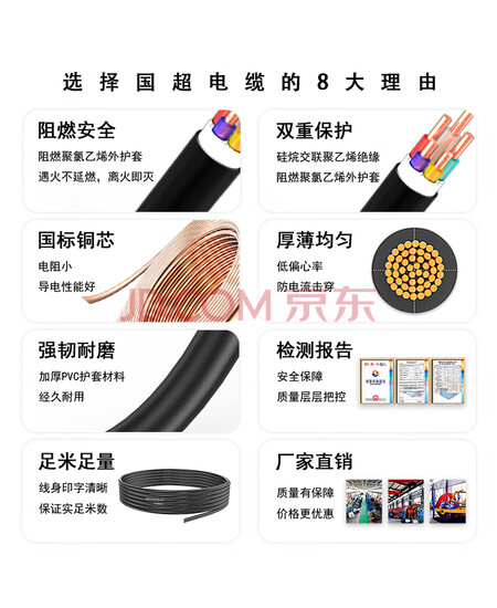 国超电缆YJV-0.6/1KV-3*1.5铜芯国标架空户外防老化3芯电力电缆 1米【现货】