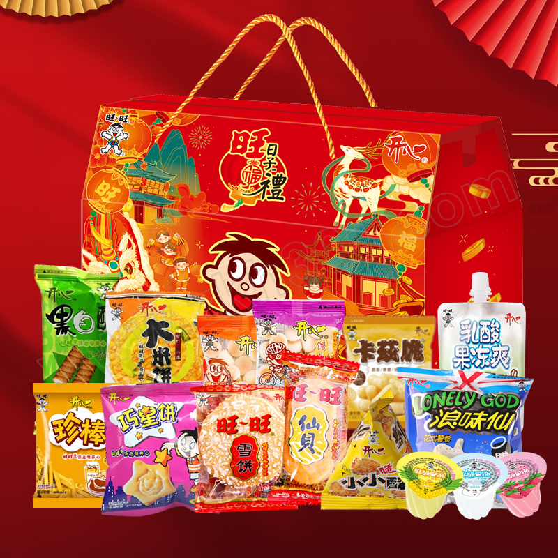 【旺旺】雪饼14g*2 【旺旺】黑白配33g*1 【旺旺】仙贝10g*2 【旺旺】大米饼25g*1 【旺旺】巧心饼18g*3 【旺旺】浪味仙10g*3 【旺旺】小小酥10g*1 【旺旺】馒头仔11g*1 【旺旺】乳酸果冻28g*11 【旺旺】卡兹脆12g*4 【旺旺】珍棒30g*1 【旺旺】果冻爽100g*5