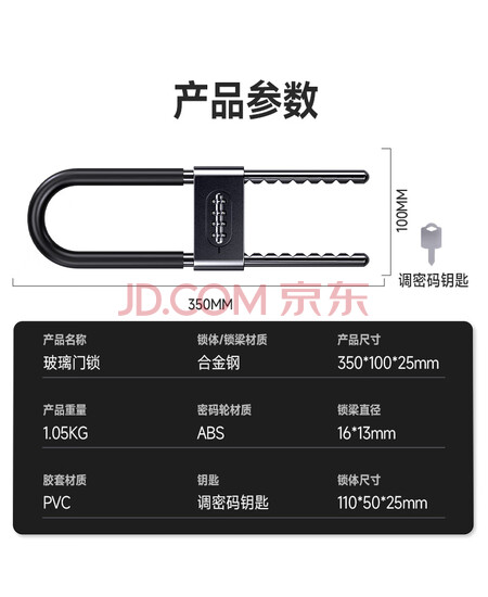 皇驰u型锁密码锁玻璃门锁防锈抗剪抗撬商铺双开门密码挂锁插锁大门锁