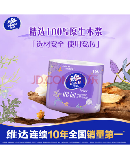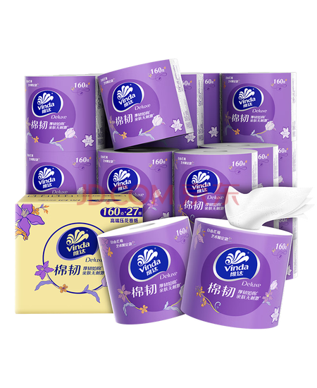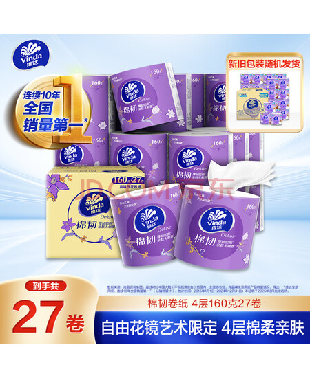 包装清单: 维达(Vinda) 卷纸 棉韧有芯卷纸4层160克*27卷 卫生纸 厚韧耐用 新旧随机发货