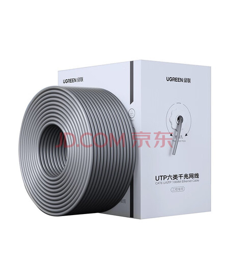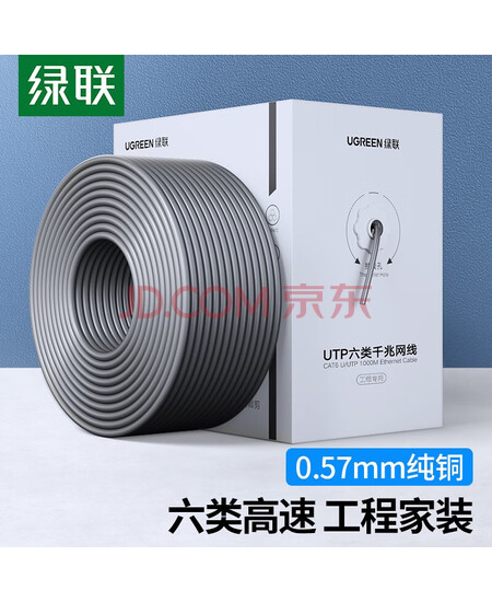 绿联(UGREEN)六类网线【工程版0.57mm】CAT6类纯铜 千兆非屏蔽网络箱线 305米 80671 灰色