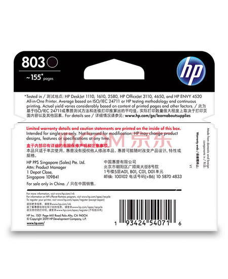 惠普(HP)墨盒 3YP42AA 803E 黑色经济适用装墨盒 适用1111 1112 2132 2131 2621 2622 2623