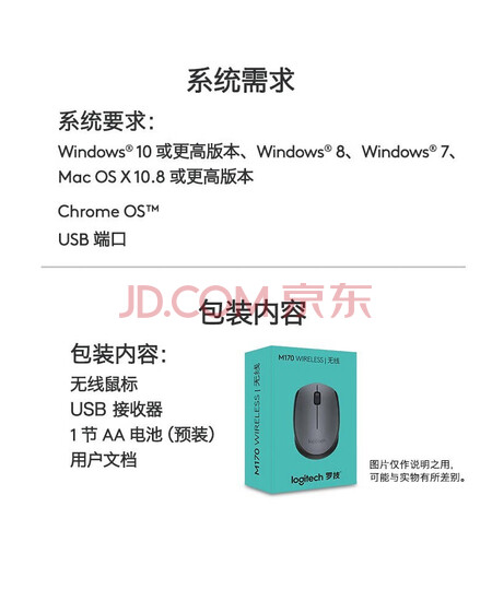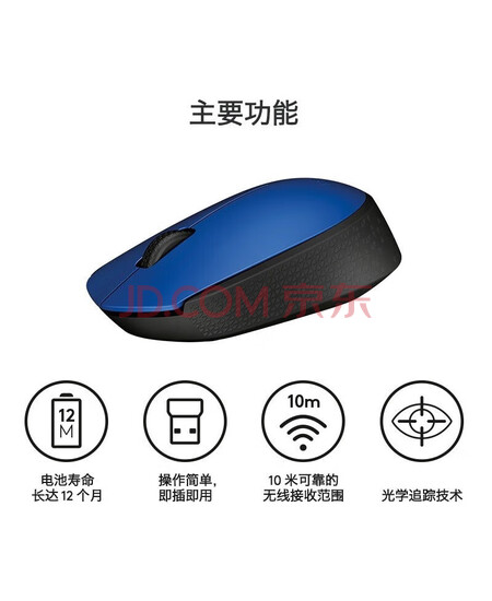 罗技(logitech)M171 无线鼠标笔记本电脑商务办公无线光电鼠标 黑