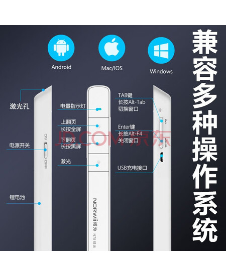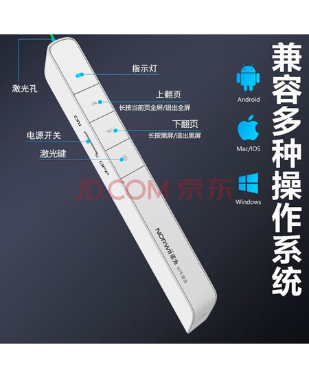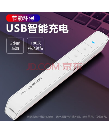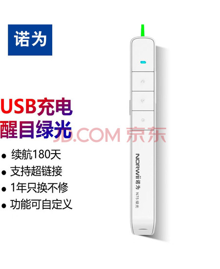 诺为(KNORVAY)N75绿光激光ppt翻页器充电款教师用多媒体功能投影遥控笔电子教鞭无线 绿光白色