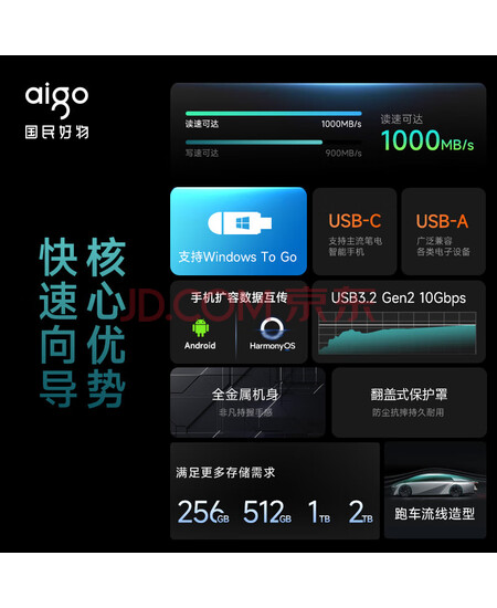 aigo256GB U397 USB3.2 Type-C双接口 超极速固态U盘 高速固态U盘