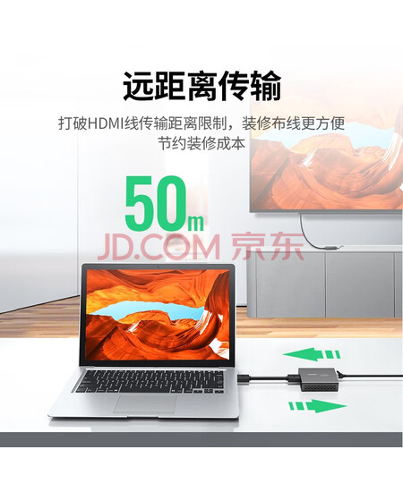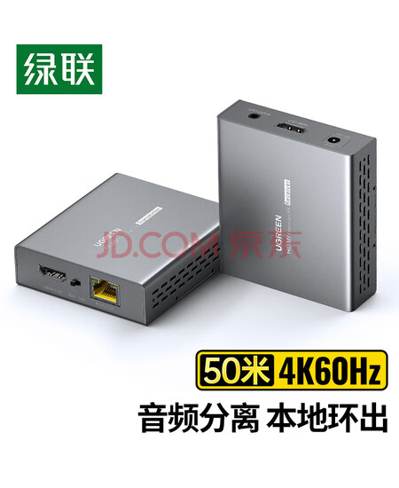 绿联(UGREEN)HDMI延长器50米 4K60HZ高清单网线转HDMI传输器 本地环出音频分离器一对装 10938