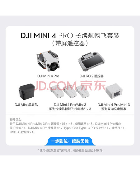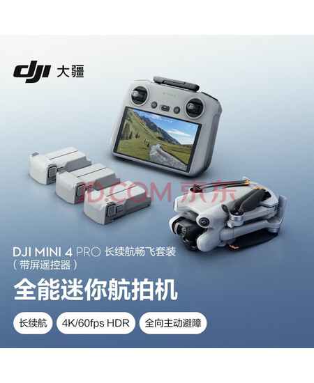 大疆 Mini 4 Pro 全能迷你航拍机 长续航畅飞套装(带屏遥控器版)入门级+随心换2年版+128G内存卡 M3T