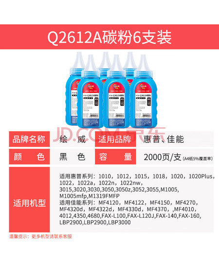 绘威 Q2612A 12A碳粉6支装 适用惠普HP1015/1018/1020plus/M1005/M1319F/3015佳能CRG303 LBP2900打印机墨粉