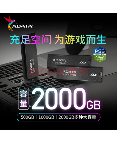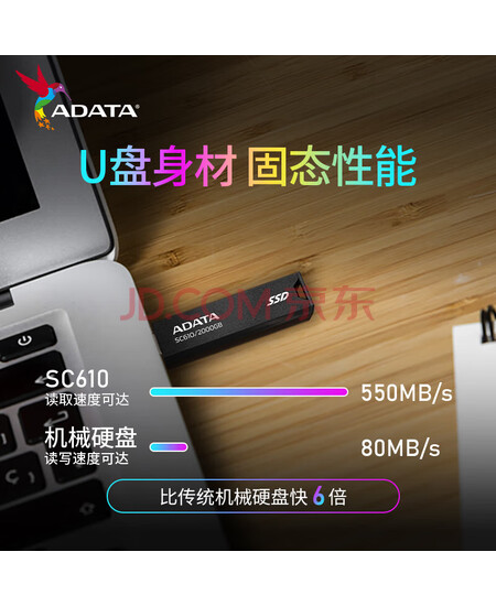 威刚(ADATA)高速固态U盘移动固态U盘 USB3.2可转type-c大容量 SC610 500G