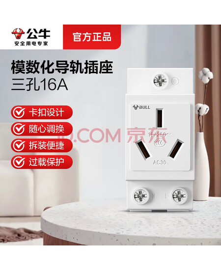 公牛(BULL)模数化导轨插座 3孔插座LAC30-316 卡扣式设计导轨式安装 250V 16A