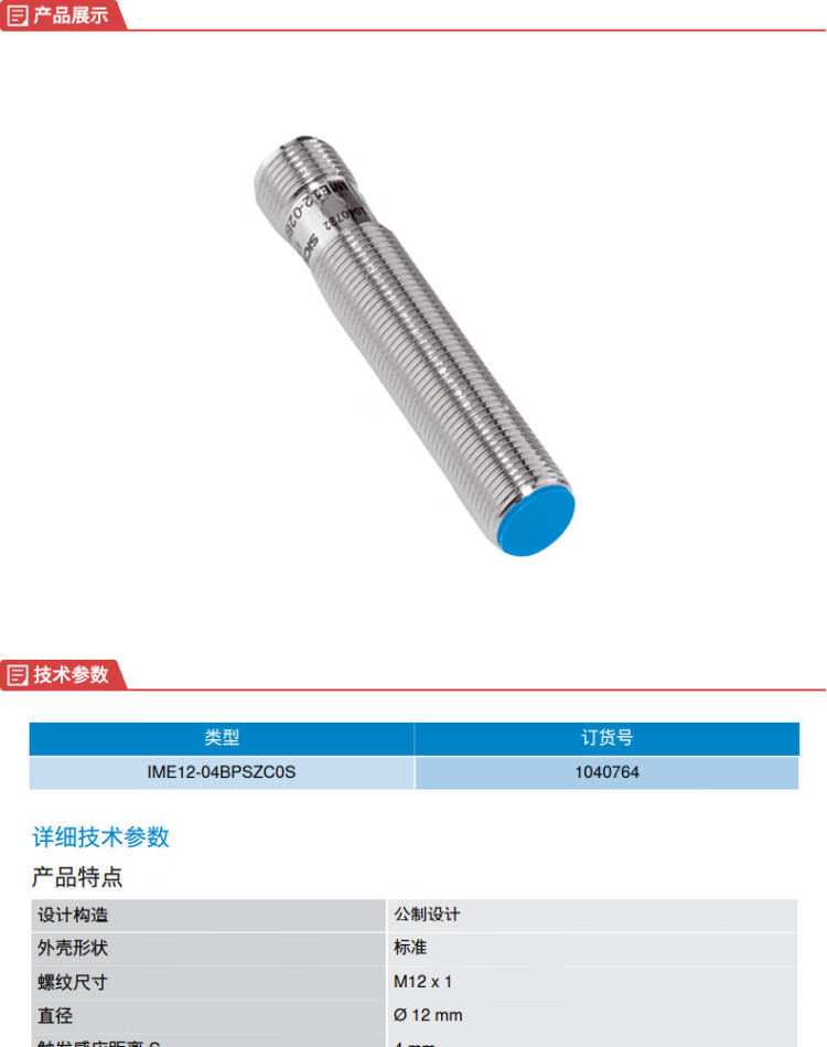 西克(SICK) 电感式接近传感器 IME12-04BPSZC0S.