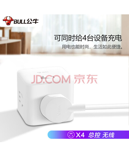 公牛BULL 魔方插座多口一转多孔插座转换器插头插线板/插排/4插孔无线便携 4位无线版UEB04W
