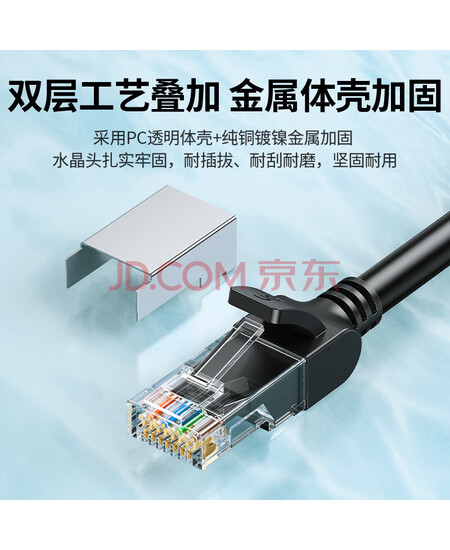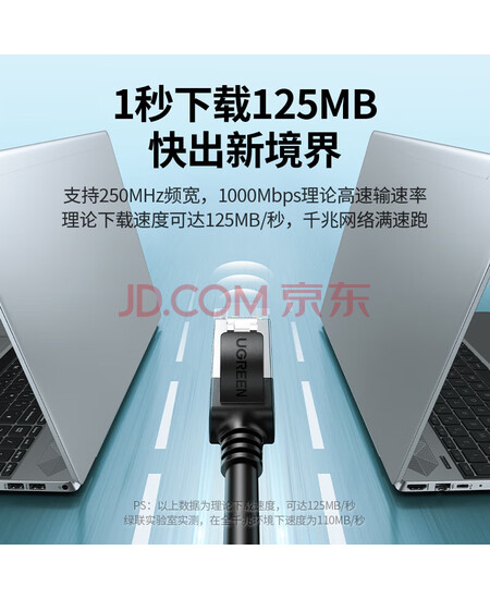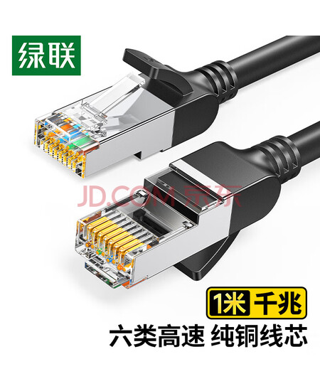 绿联(UGREEN)电脑宽带监控8芯双绞线 成品跳线黑色1米 50191 2条装 六类铜网线 CAT6类