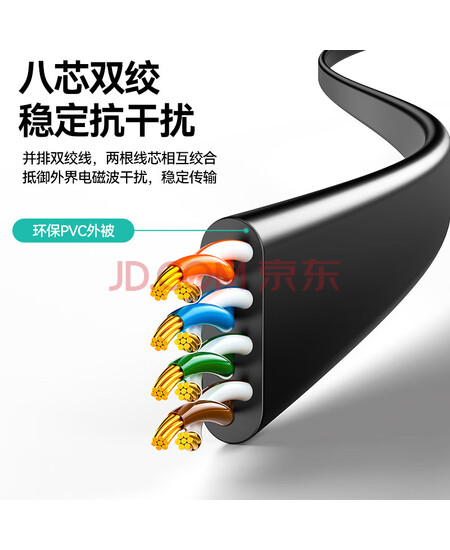 SAMZHE 六类网线CAT6类千兆无氧铜扁平网线宽带监控网络连接成品跳线黑色0.5米HBP6005