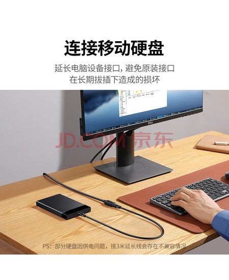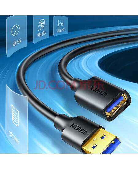 绿联(UGREEN)USB3.0延长线公对母 加长转接线U盘鼠标键盘打印机分线器 1米 10368黑