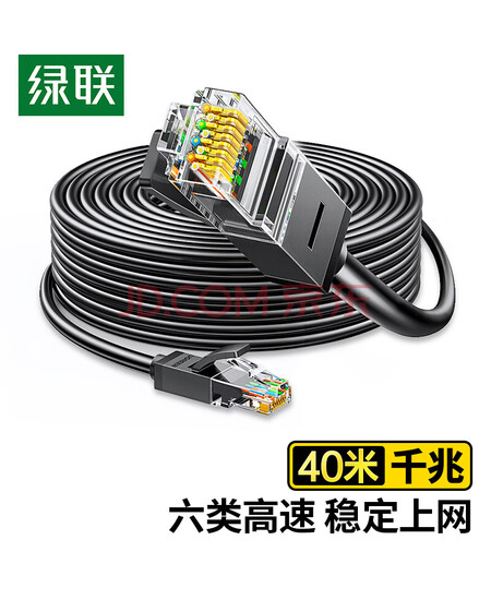 绿联 六类网线 40米 千兆高速宽带线 CAT6类网络工程家用电脑监控跳线 8芯双绞成品线缆 黑色20169