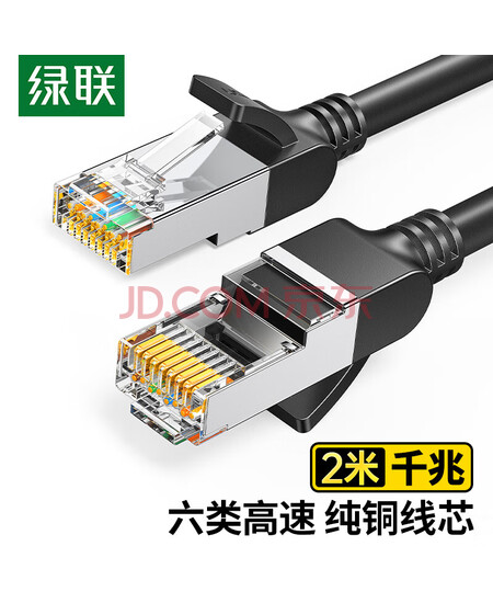 绿联 六类纯铜网线2米 CAT6类千兆网络高速连接线 电脑宽带监控8芯双绞线 家用成品跳线 黑色 50192