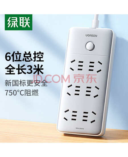 绿联(UGREEN)新国标6位总控插座 插线板/插排 线长3米 全长3.2米 15299