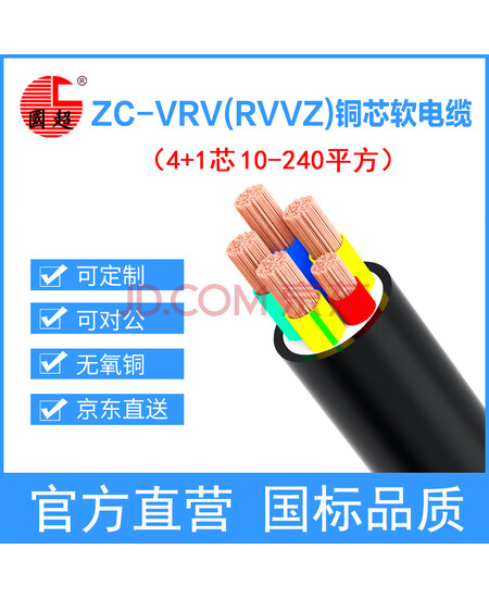 國超电线电缆ZC-VRV(RVVZ) 4*35+1*16平方阻燃铜芯软丝防老化国标4+1芯电力电缆 1米【现货】