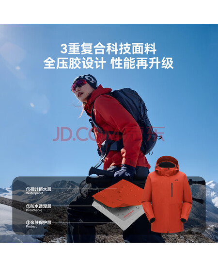 伯希和(Pelliot)【山野经典2.0】冲锋衣男女三合一秋冬保暖外套夹克12340106紫3XL