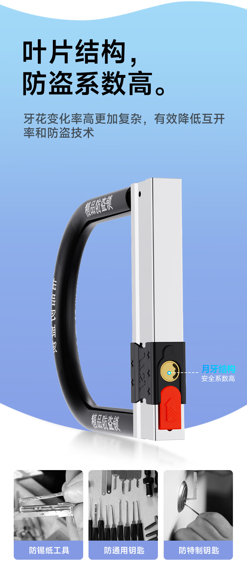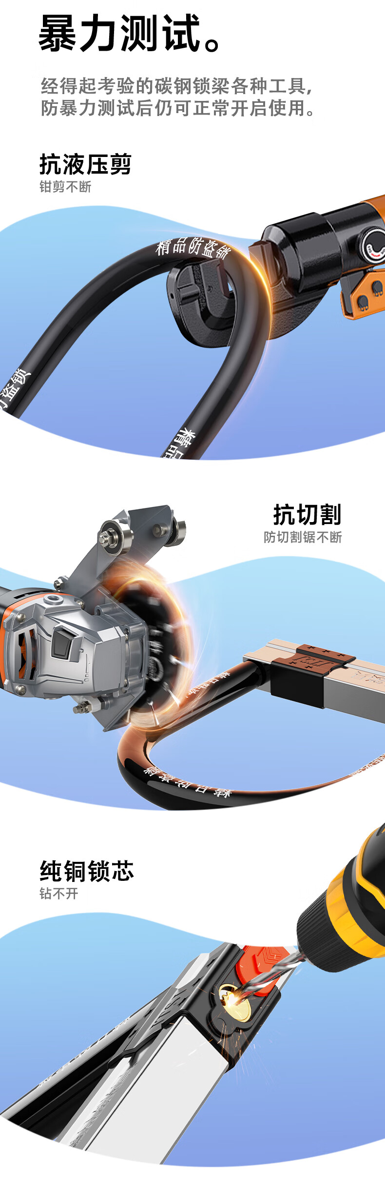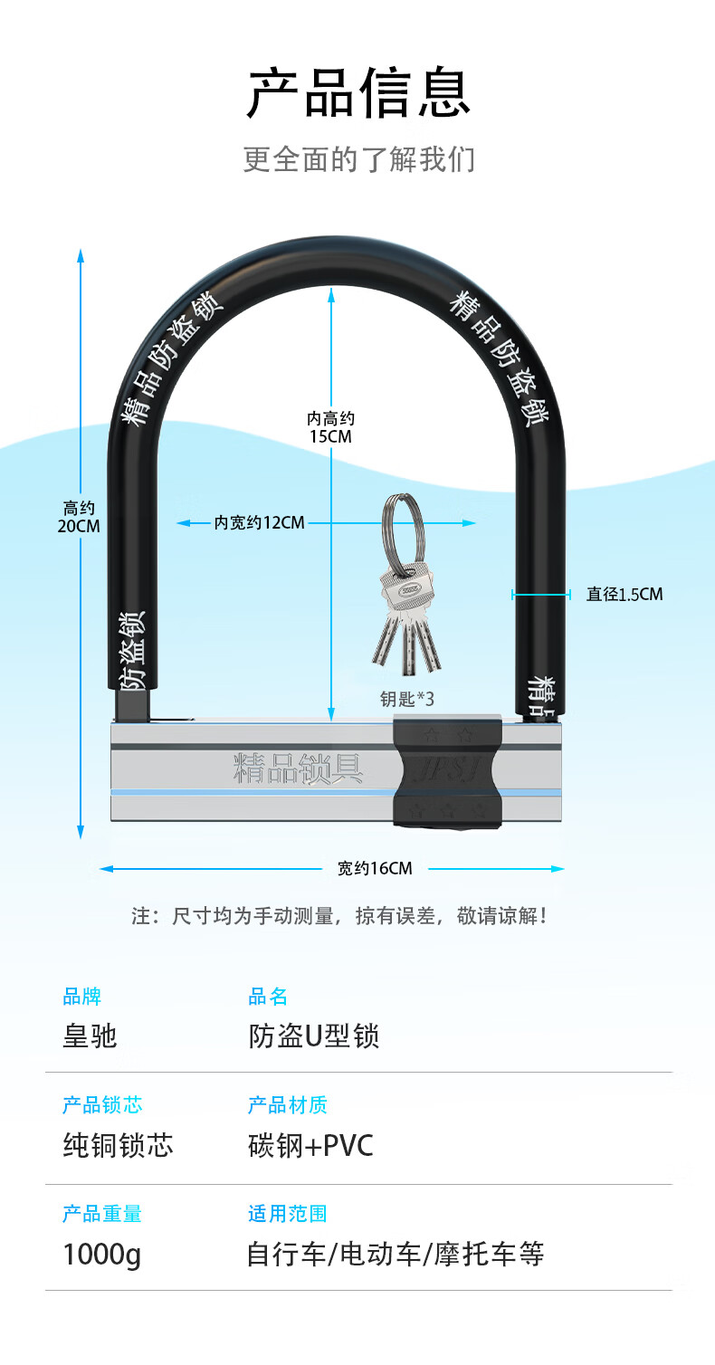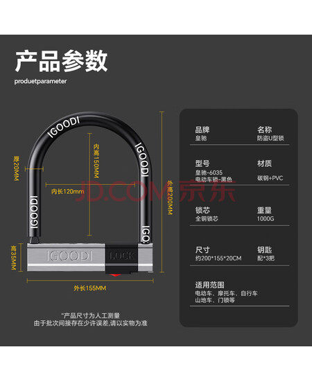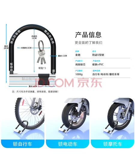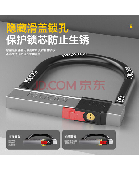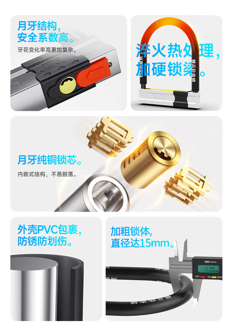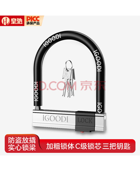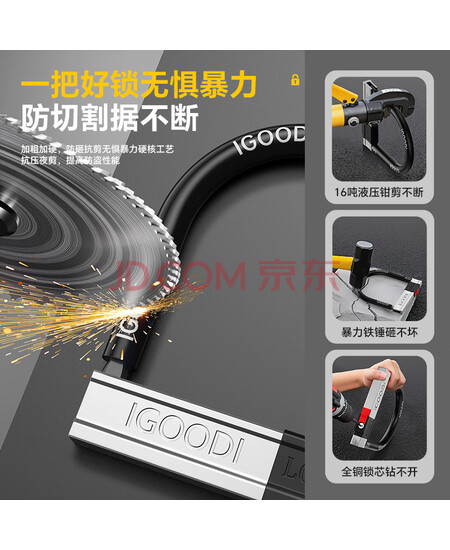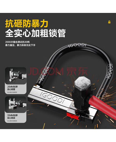皇驰电动车锁防盗锁u型锁防撬防盗锁摩托车锁自行车锁实心加粗防剪