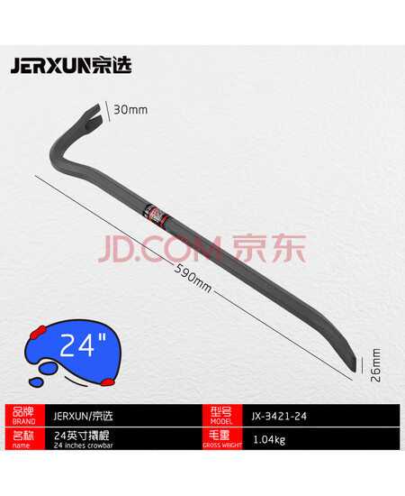 京选(JERXUN)24英寸六菱撬棍高硬度撬棒木工起钉器重型铁撬拆木箱扒胎破拆工具