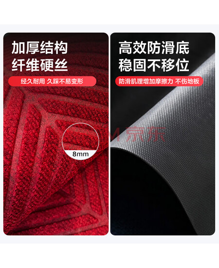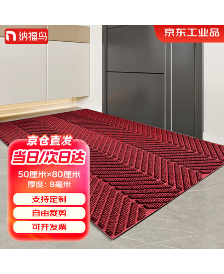 纳福鸟入户脚垫门口除尘防水抗污耐磨轮胎纹防滑地垫50*80cm暗红色加厚