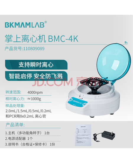 比克曼生物 迷你离心机实验室工业低速掌上迷你数显微量pcr仪器脂肪血清分离机 【4000转】BMC-4K 定速