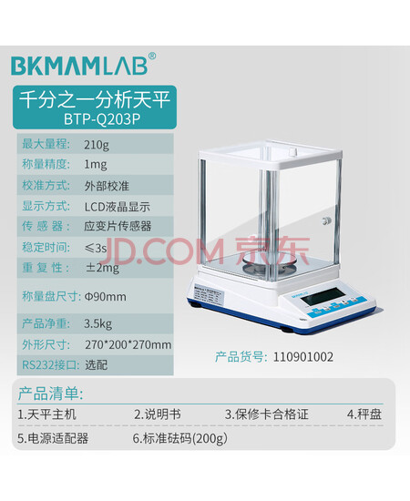 比克曼生物 电子分析天平实验室高精密度电子克秤带挡风罩砝码 【210g 】千分之一/外校【京仓】