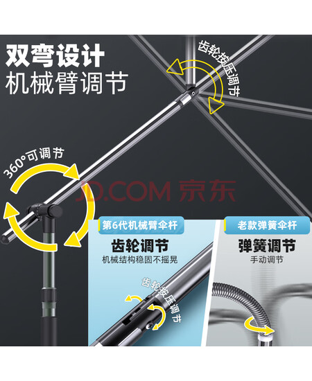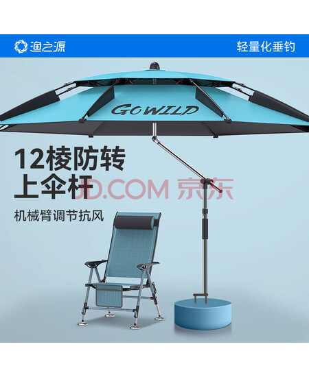 渔之源新款机械臂钓鱼户外遮阳拐杖伞防暴雨防晒多向黑胶12棱 2.4米