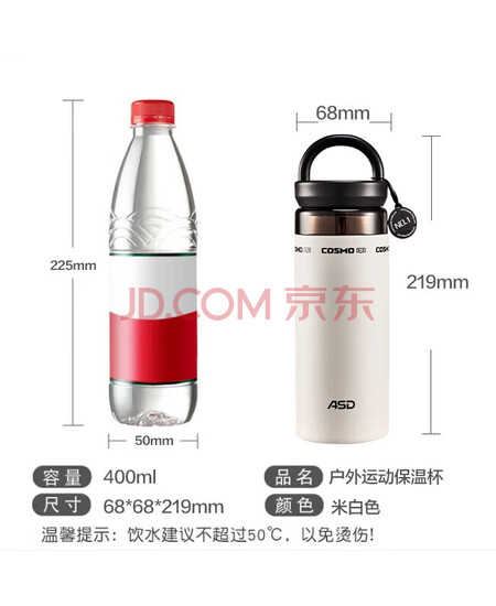 爱仕达(ASD)户外运动便携保温杯家用办公学生水杯长效保温400ml RWS40B18WG-W