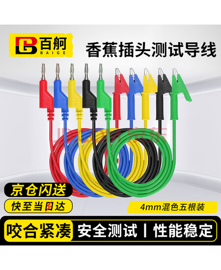百舸 4MM香蕉插头转鳄鱼夹线10A电力测试线耐高压1000V电源夹子万用表 混色五根装/包 CD370784