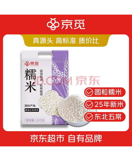 京觅糯米3斤 京东自营端午粽子米 圆糯米 五谷杂粮 当季新米 五常优选