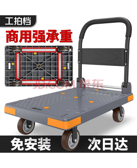 工拍档 折叠平板手推车 四角防撞【商务灰色】载重1000斤90*60cm5寸轻音轮 手推拉货搬运小拖车装修工厂