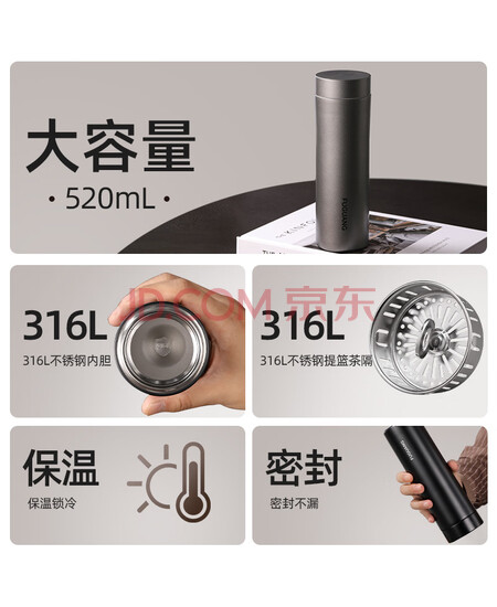 富光保温杯316L不锈钢水杯男女士泡茶杯子保冷杯商务茶水分离京东限定