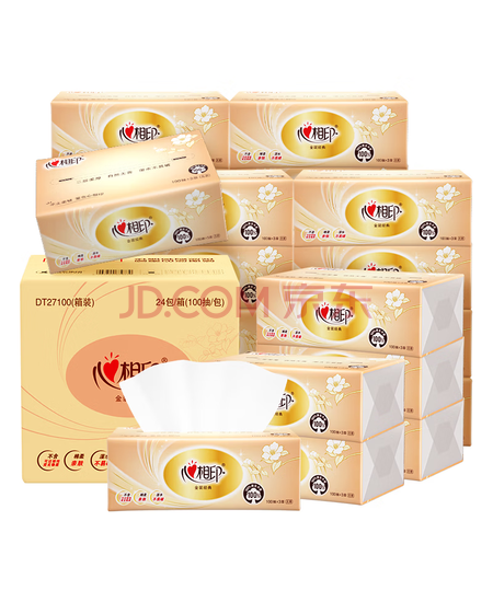 心相印抽纸 金装经典 3层100抽*24包 XS码软抽 纸巾 箱装销售