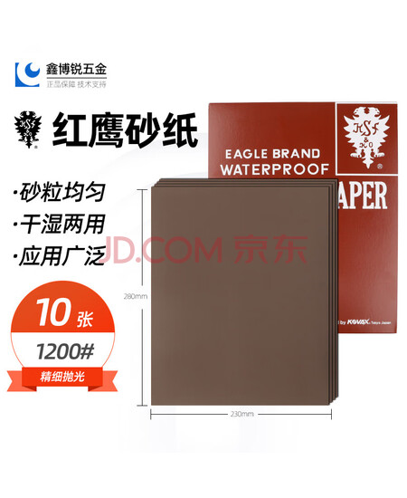 KOVAX日本进口红鹰砂纸1200目10张模具抛光打磨干湿两用耐水砂纸