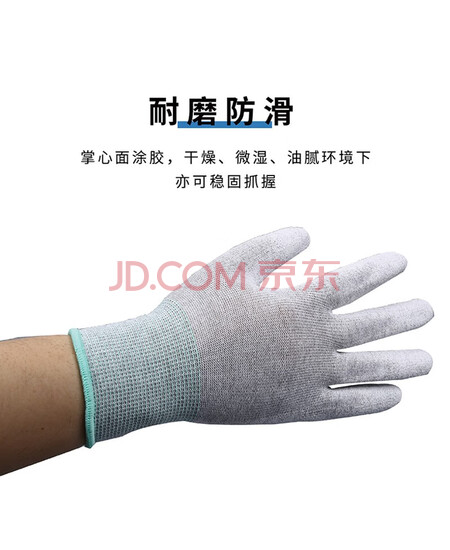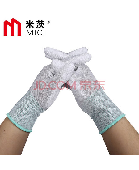 米茨 防静电手套碳纤维涂掌手套PU涂层轻薄无尘透气防滑装机电子厂劳保手套 S码小号(10双/包)