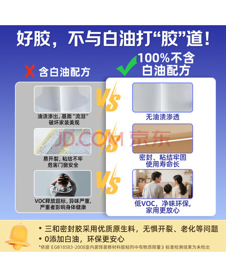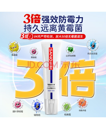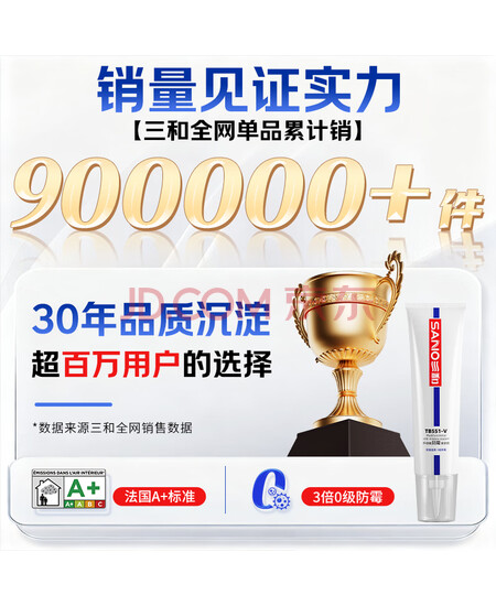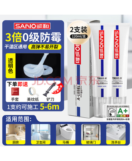 三和防霉胶封边胶抖音同款3倍0级防霉防水玻璃胶厨房马桶密封胶透明*2