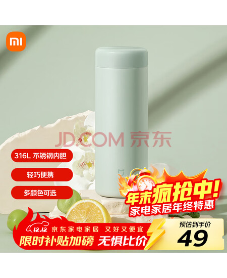 米家 保温杯 316不锈钢水杯 男女士杯子 大容量茶杯便携 350ml绿色