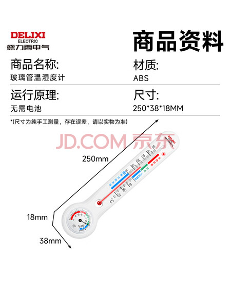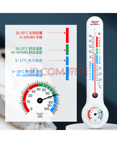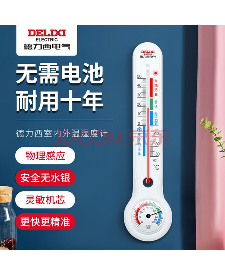 德力西电气(DELIXI ELECTRIC)温度计室内玻璃管家用高精度婴儿房壁挂式大棚湿度养殖干温湿度计