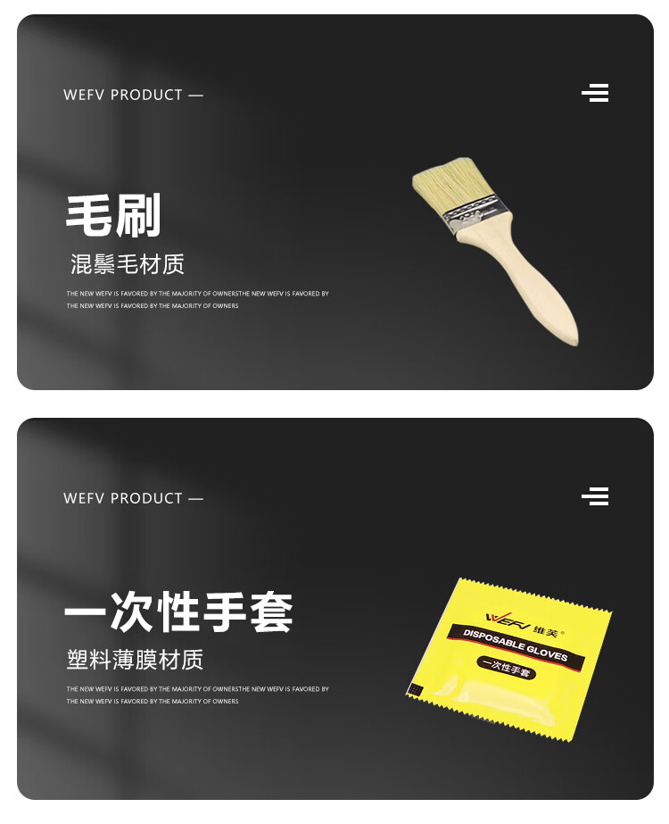 包装清单: 4寸毛刷*1 ,一次性手套*2