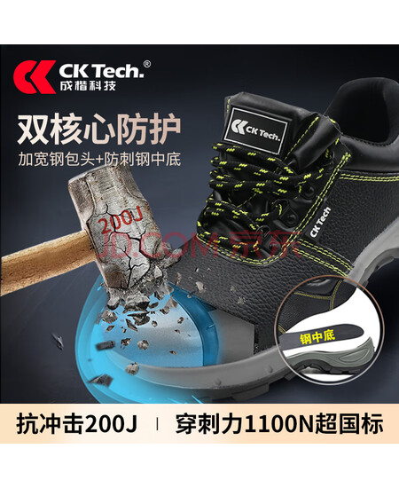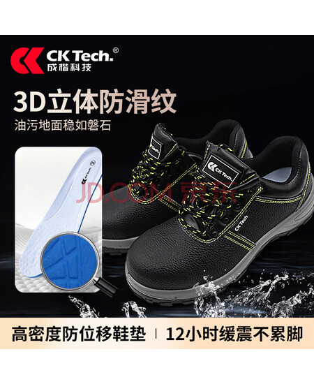 成楷科技 钢包头压花皮劳保鞋男防滑耐磨防砸防刺穿工作安全鞋 CKF-DB206 黑色36码 1双