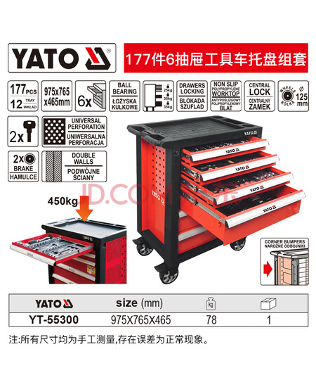 易尔拓 YATO 177件套6抽屉工具车托盘组套 177件套 把 YT-55300