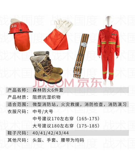 战术国度 森林防火服5件套 消防灭火防护服棉质阻燃隔热服扑火救火套装 衣服大码靴子43码 其他尺码联系客服