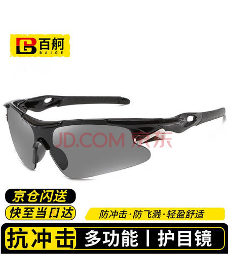 百舸(BAIGE)护目镜防风防尘防护眼镜劳保工业切割防打磨飞溅冲击 护目镜-黑框黑灰片