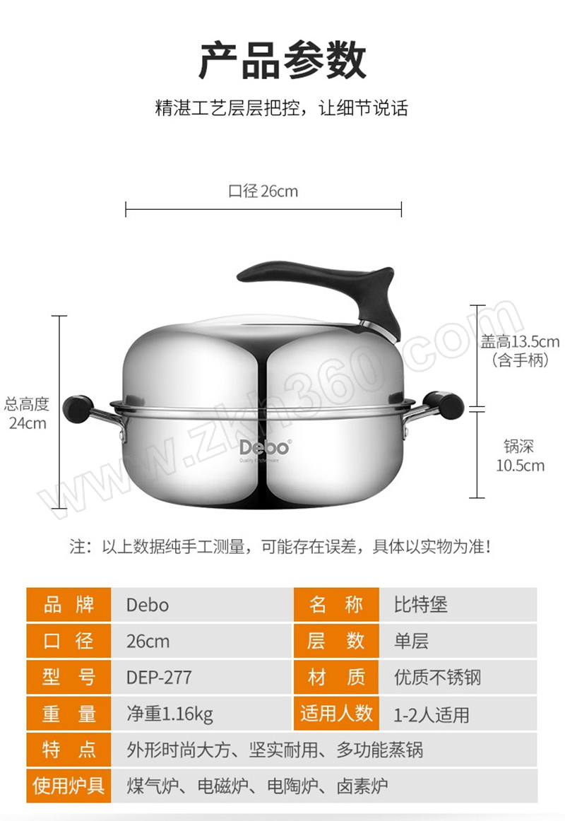 | 核心规格 | 口径260mm 优质不锈钢 4L 包装345×122×291mm |