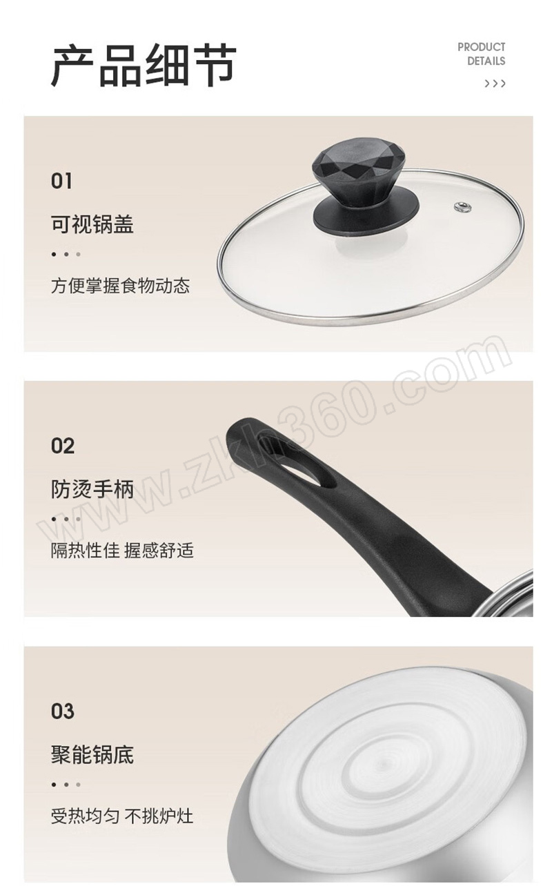 ·304不锈钢基材,茶色钢化玻璃,可直视锅底,随时了解锅内烹饪状况; ·高拱型不锈钢镶嵌玻璃盖,食物烹饪过程可视,更好锁住热量; ·锅内侧光精抛光,不易积污垢,易清洁,外侧哑光高档大气; ·聚能复底设计,导热均匀,迅速锁住热量,不挑热源节能省时,蒸,焖,炖食物更美味。